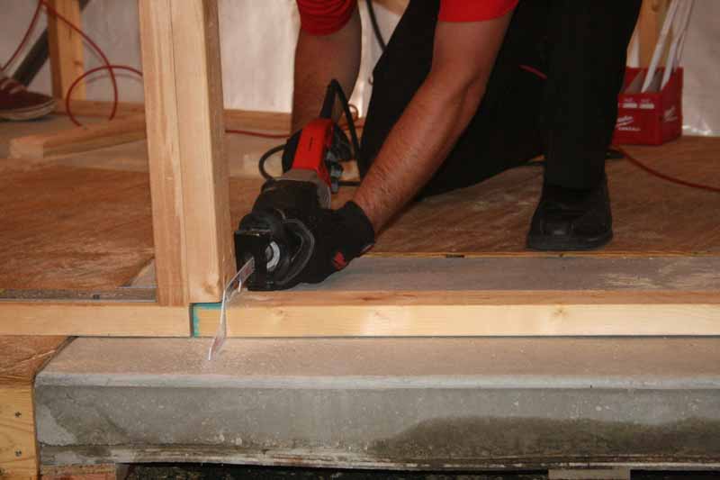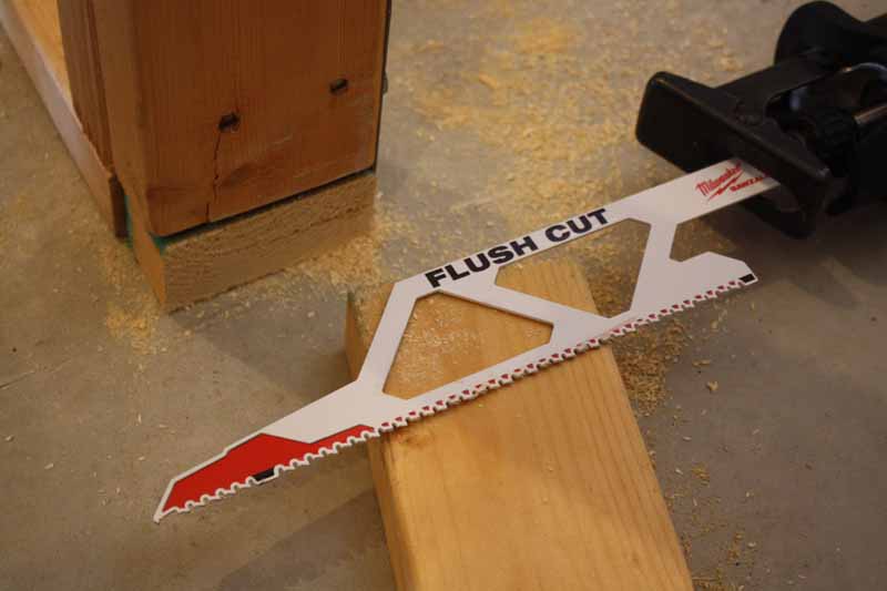 Cutting out a footer 2×4 for a door was a much more impressive demo. The flush cut blade allows you to get right down flush and the twin floor guards which sit lower than the teeth stop the blade from eating through into the floor and damaging the teeth on concrete, etc.