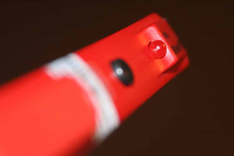 After removing the plastic battery protector, you can immediately use the VT201A Non-Contact Voltage Tester by pressing the black button on the face of the tool. It’s positioned where your thumb would naturally fall and the red LED blinks as the tool emits a short beep, letting you know the battery is working. Then, as you get the tip of the tool close to an active voltage source, the Tester’s red LED blinks rapidly and the tool emits a diminished rapid chirping in time with the flashing light.