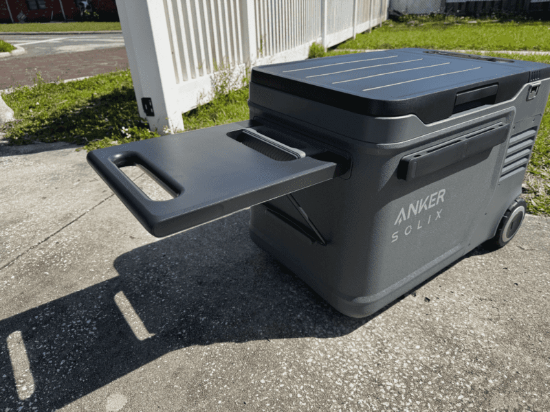 Anker also carried over the fold-down tray that doubles as a handle. This feature makes it extremely easy to transport the cooler around using its two 6-inch wheels. When youโ€™re not on the move, the tray has an inner bar that lets it sit flat, allowing for extra surface area for prep or storage.