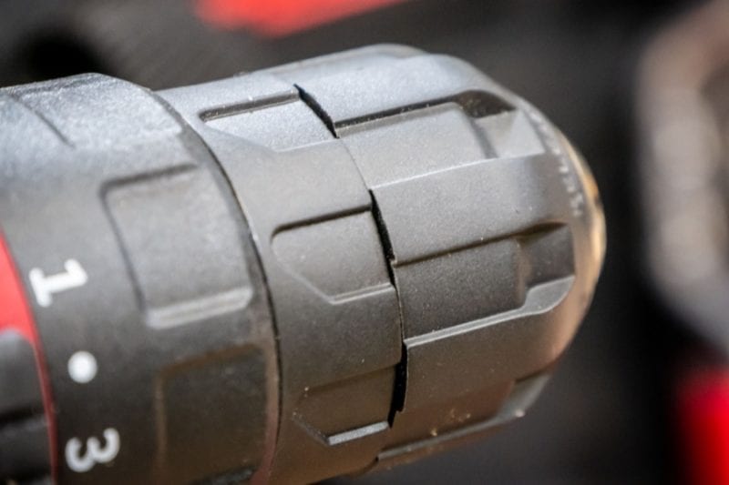 The 3/8-inch chuck is an unusual 3-piece design thatโs split at the front before leading to the clutch. Normally, thatโs one piece on the exposed section. You may have to adjust the way youโre used to gripping the chuck and grasp just the tip. It takes some getting used to, and we definitely noticed the difference during our tests.
