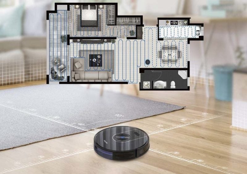 There are several features weโre excited to see at this price point. The biggest one is room mapping and route planning. The Bagotte BG800 has the ability to actively map the room itโs working in and plan an efficient route, much the same way that a professional lawn crew cuts your lawn.