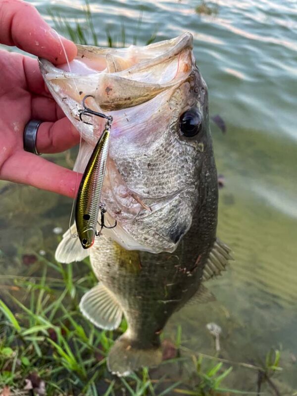 Paired with FFS, you can casually work the Finisher into the strike zone and then twitch hard when it gets there, acting just like a baitfish that realizes thereโs a predator nearby. That finishing move is exactly what you need to trigger bites from otherwise uninterested fish. It worked perfectly in my neighborhood lake. The day after a strong cold front brought the coldest temperatures of the year, I was able to trigger a solid strike on a drop off when I went out to shoot photos of the baits.