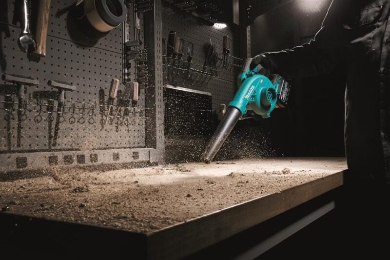 For shop and jobsite cleanup, sometimes, a compact design is more important than the most powerful performance. In the case of the Makita 40V GBU02 blower, it stands at only around 20 inches long and weighs under 3 pounds for the bare tool. Despite the small form factor, it still manages to pack a punch, delivering up to 127 CFM and 221 MPH airspeeds. While this isnโt the strongest blower weโve seen by any means, it will still do a fine job clearing small, dry debris from your work surfaces.