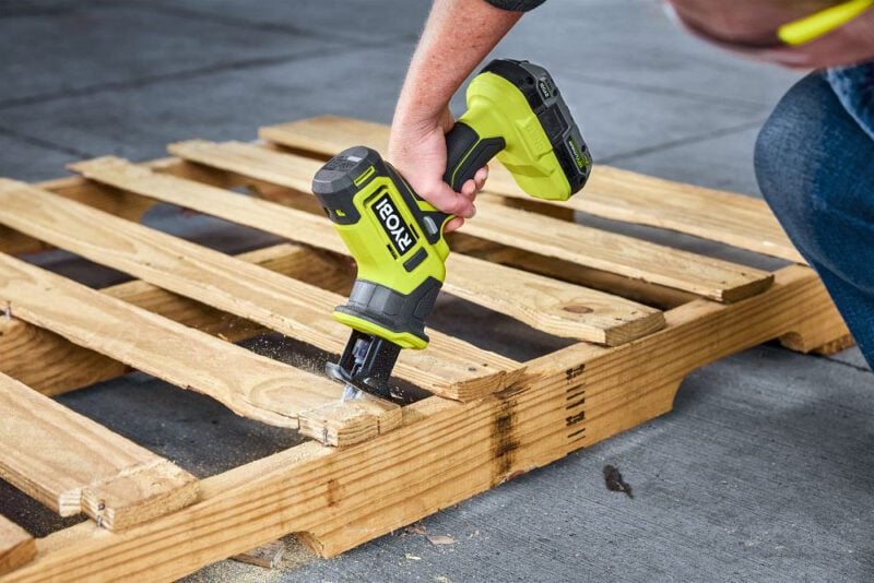 The Ryobi PCL510 one-handed reciprocating saw is another 18V cutting solution released this season. The main draw with this tool is its one-handed compact design, allowing for easy handling in tight spaces. It weighs just 2.2 pounds bare, and Ryobi describes it as an ideal solution for home improvement and DIY projects.