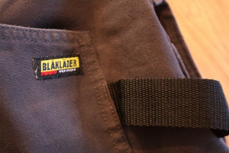 On the right-hand side, there is a heavy nylon webย loop for your hammer. The position of this loop puts your hammerย exactly where you would naturally grab it if you are right-handed.ย Left-handers will have to petition Blaklader for a Lefty-friendlyย version. Further down each leg are more specialty pockets. On theย left, there is a phone pocket with a hook and loop flap. If you haveย any kind of smartphone, it will have to live in one of your frontย pockets since it probably wonโt fit in the slim phone pocket that isย provided.