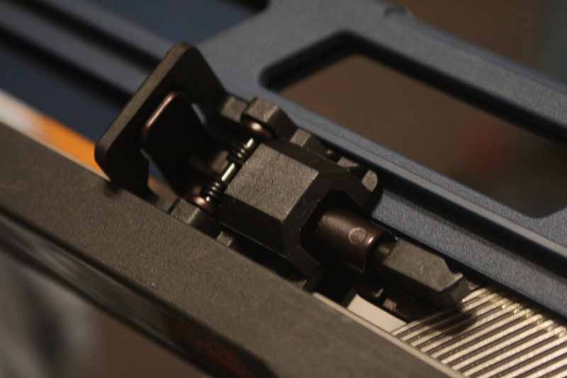 We selected the Angled FNA250-15, which pitches the magazine at approximately 34 degrees. It gives you the ability to really reach into tight spaces like corners and alcoves. Nails are loaded by feeding them through the back of the magazine. You then pull back on the nail feeder mechanism which rides over the nails and then settles in behind. Jams can be eliminated quickly by simply flipping up the Quick Clear mechanismโs hinge. We practiced the procedure and found it to be very quick and easy, though we never actually needed to do this during the course of testing the tool.