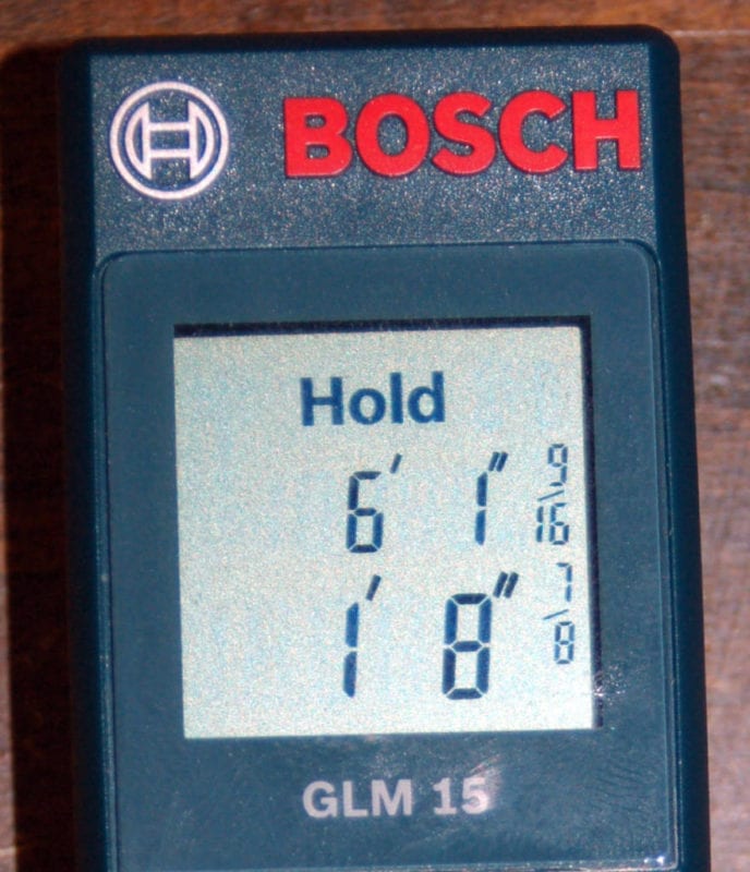 When I opened up the package to get my first look at the Bosch GLM15 Laser Measure, several things were immediately apparent. First, this measuring tool is compact. It fits easily in my hand and is lightweight. It has just one button. Hallelujah! I love simplicity. Donโ€™t get me wrong, I like electronic tools that do a lot of things, but sometimes I just donโ€™t want to spend 8 hours reading the instructions. Bosch packages the GLM15 with the required batteries, so I wasnโ€™t forced to head to the store to purchase more.
