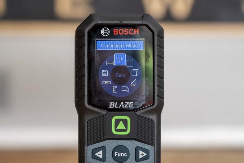 The Bosch Blaze Laser Measure has a slew of features along with what you have come to expect. It obviously takes standard measurements, including real-time distance, but it also takes adds and subtracts measurements, calculates area and volume, and takes indirect measurements using its 360ยฐ inclinometer.
