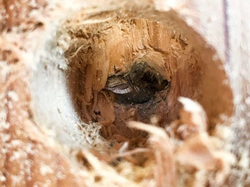 Another scenario is when you need to make a hole in a header and you’re tackling a nail straight on or at a straighter angle. Again, you feel the bit slow down and this process takes longer than cutting sideways through the nail. I thought the bit might get to a point and push the nail out, but the Nail Strike chewed it up and just spat out the head.