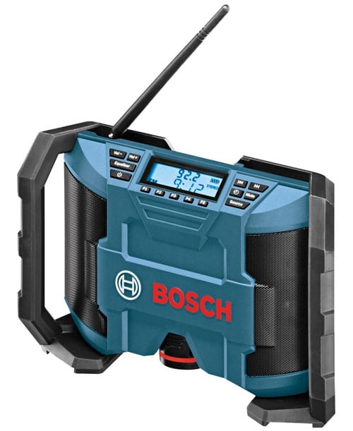 Like its bigger brother, the Bosch Power Box PB360C radio, the Bosch PB120 12V radio can also take some hits thanks to shock-absorbing handles that also protect it from job site abuse. Weโ€™ve heard this thing, and without spoiling the bigger review, we can tell you that the Bosch PB120 18V job site radio has some amazing output for such a little enclosure. Just stay away from that EQ button, as it only serves to bloat the bass and distort the output more quickly at high volumes.