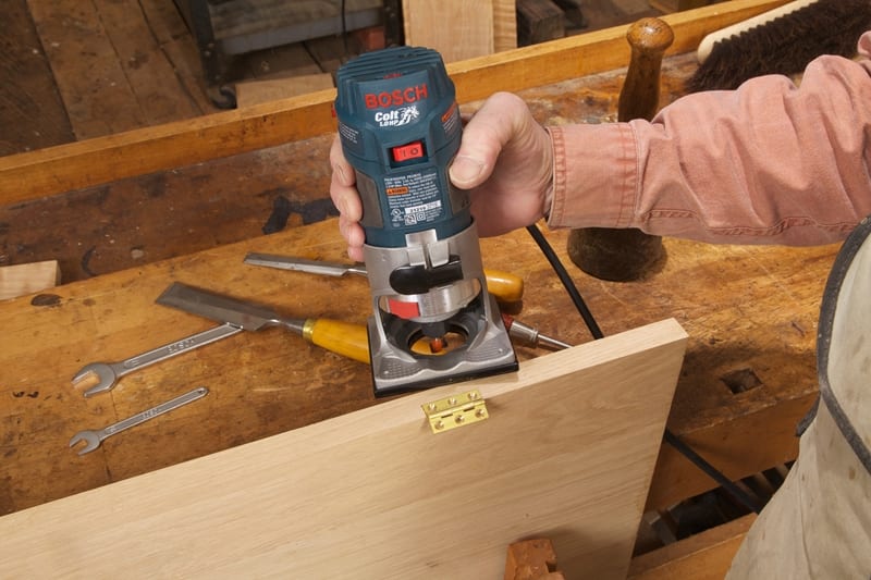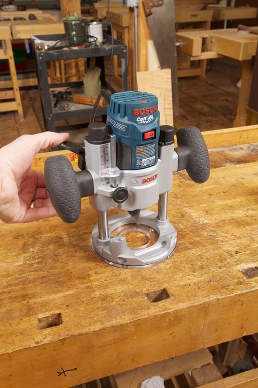 In all of my use tests, the brushed universal motor of the Bosch PR20EVS Colt Router had plenty of power. It had more than enough for ยผโ shank bits of 1-5/16โ maximum diameter for which it is designed. Itโs this robust power that makes the Colt a workhorse in a host of everyday woodworking applications. The second plunge base expands this horizon even further. In many handheld situations, a small light router is far better than a 3 HP behemoth. The small size and lightweight body allow it to be more dynamic, giving a better sense of feel, whether it be following an edge with a pilot bearing/fence, or following a template with a guide bushing. I found it great for plowing grooves, chamfering, profiling edges, and inletting hinges.