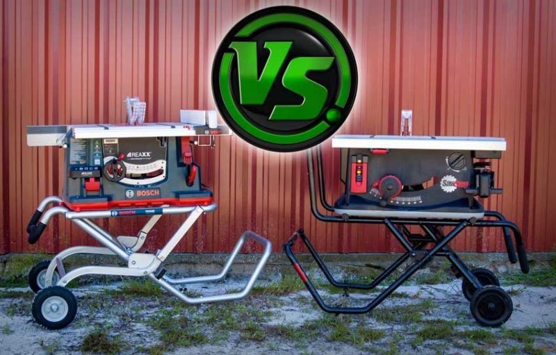 I simply love the rip fence, blade height adjustment, and tool storage on the SawStop JSS-MCA. The included Gravity Rise stand included with the Bosch Reaxx remains my favorite, however. Weโre not going to make any decisions for the tradesmen reading this article. So, Bosch vs SawStopโฆwhich is it?ย Youโve got the data and can choose forย yourself.