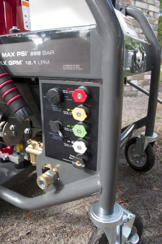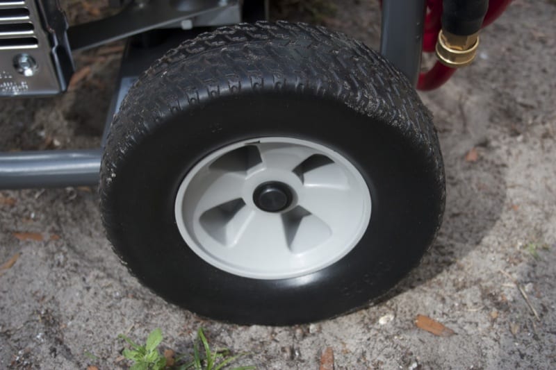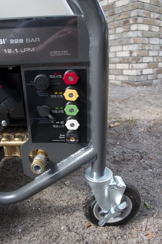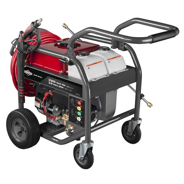 Also, I look for it to have good grab handles so I can lift it up into the truck and move it around easily on rougher job sites. The Briggs & Stratton 3300 has the four wheels, and since even the fronts are 5โณ in diameter, I could pull it over tree roots and bumpy sod with no real issues. I had one a while back that was just way too big, so now I appreciate a more compact pressure washer that still has the power I need.