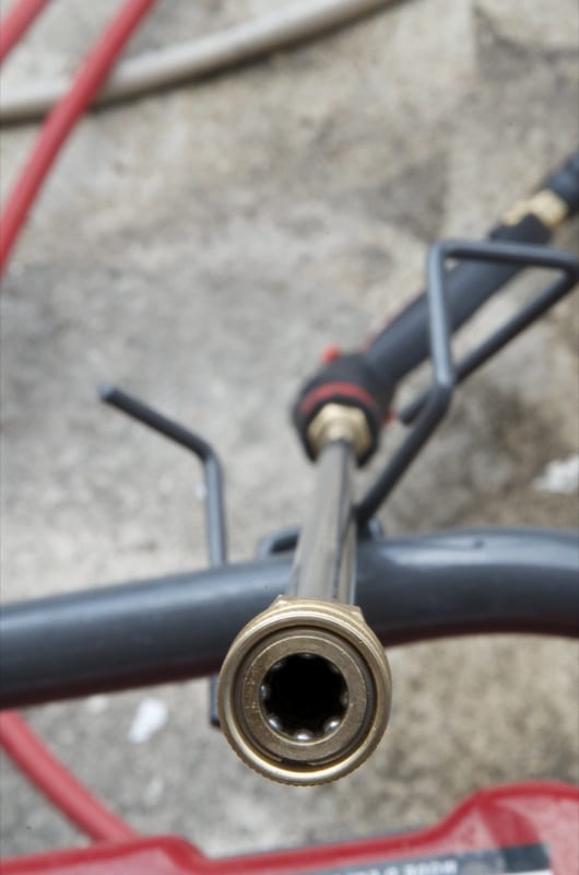 Rick: It had really high pressure, and it was nice that it came with five tips in all of the varying degrees of spray that Iโd expect. The wand has a comfortable pistol grip handle and a secondary hand rest for your other hand, which I used a lot. I always seem to end up doing a lot overhead and the secondary grip helps me to balance the wand and better control my spraying.