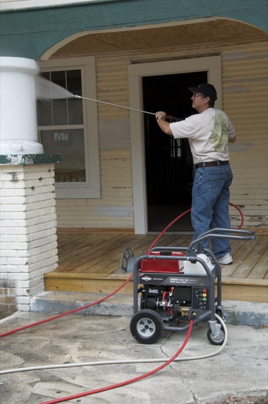 Many of the tools we review at PTR end up being tested and used on inner-city work projects. This is because several of the writers are involved in Parker Street Ministries, a downtown non-profit organization focused on neighborhood revitalization and restoration. We also just enjoy being able to give back to the community. When we got a Briggs & Stratton Elite 3300 psi pressure washer in for review, we knew exactly how weโd test it. One of the projects weโve been working on this year is the renovation of two early 1900โs bungalows, homes that have been mentioned in other articles in this and other PTR issues. These historic era homes have tons of character, and the renovation work includes everything from siding and windows to moving walls and of course painting.