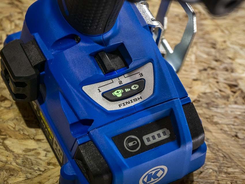 The Kobalt brushless 24V impact driver comes with a 2.0Ah battery while the Hercules has a slightly higher capacity with a 2.5Ah pack. Kobalt Tools uses an extra cell in their system so the watt-hour comparison is pretty close: 43.2Wh for Kobalt and 45 for Hercules.