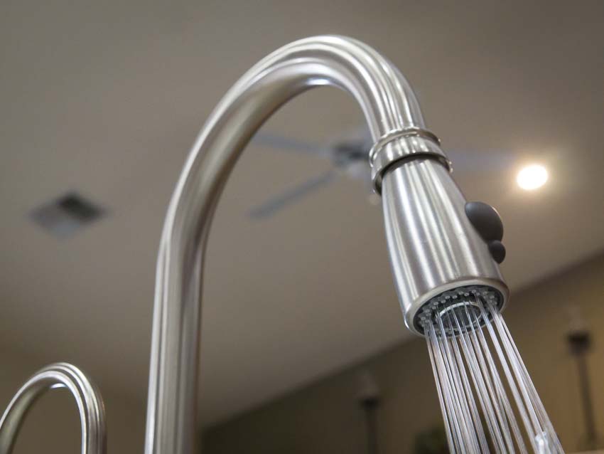 Like allย Franke products, they arrived well-packed and with all of the accessories leading directly to the faucet or filter. The quality of finish, as well as the build quality, impressed. By all I could ascertain visually, these faucets should last a lifetime. The Franke Farm House FHPD180 Satin Nickel pull down kitchen faucet shippedย nestled inย a cloth bag within the box. The faucetย includesย integrated braided supply lines and pull-out spray nozzle. The supply line and pull-down faucet hoses all looked well-made.