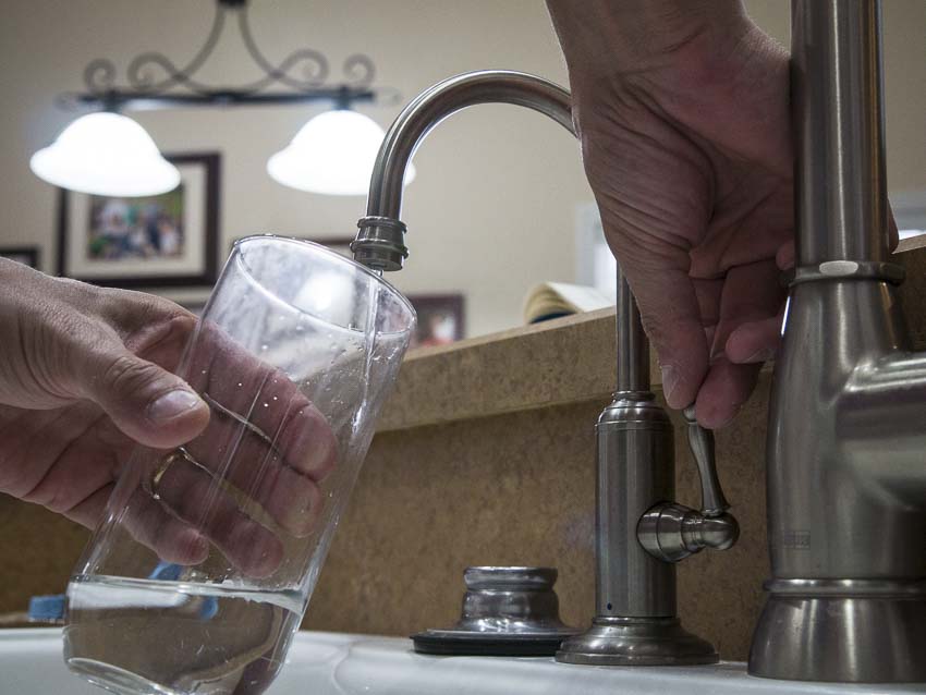 We then ran a tube from the valve to the inlet side of the filter system and then from the outlet side to the drinking waterย faucet. We measured and cut our tubing and then pushed it into the various quick connects. Easy peasy!
