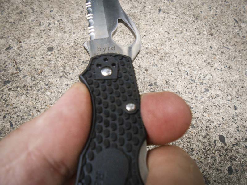 The teardrop cut out in the blade is effective, just not as refined as the Spyderco Atlantic Salt knife. It seems to be almost a Honda/Acura or Toyota/Lexus storyโ€”a relationship thatโ€™sย not at all hidden by Spyderco. You can see and feel the knifeโ€™s common heritage, but the Salt is clearly more refined. The Spydercoโ€™s are also made in Seki City in Japan, whileย the Byrd Rescue 2 knife isย stamped as being made in China.