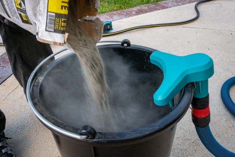 Start by connecting the unit to a standard garden hose. Then add the concrete to your bucket. Collomixโs Dust.EX and a vac can greatly reduce the amount of concrete dust that goes airborne while youโre pouring.