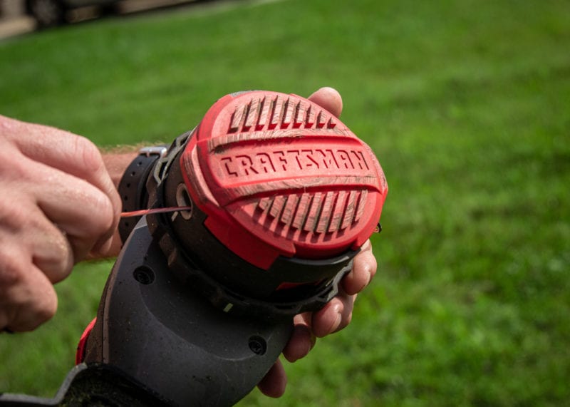 Line changes are pretty simple with Craftsmanโs โQuickwindโ system. Itโs similar to other quick-load heads. Line up the white lines on the head, run your line through halfway, and turn to load it. You donโt need to fumble tangled line or remember which way to wind.