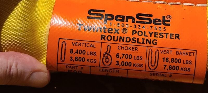 Choker is what most people seem to prefer because it is the most secure, but it is also the weakest. Therefore buy bigger slings that you think you will need. The age and condition of the slings and even the weather change your calculations too. All of this is well beyond the scope of this article. See IPT’s Crane and Rigging Training Manual for more information.