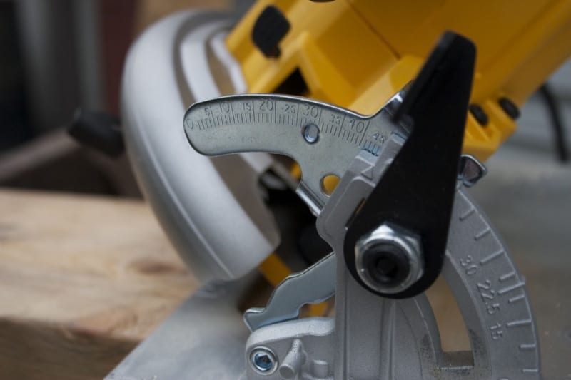 DeWalt also added one more degree to the bevel capacity, allowing it 57 degrees of movement (which incidentally matches the model number). This saw has an easy to adjust metal bevel lever and can quickly and easily achieve bevel cuts that other saws canโt. This new sidewinder was starting to do so much, I began to wonder if it could also leap tall buildings in a single boundโฆAny roofers out there? In any case, I know the increased bevel will come in handy cutting and framing in rafters.
