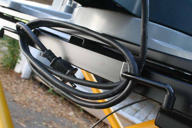 The stand also comes with integrated cord wrap posts that need to be installed. However, thereโs no way to secure the plug. If your cord doesnโt include a cord-pinch, you may want to invest in a hook-and-loop cable tie or something similar.