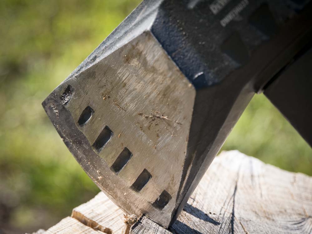 Splitting Head Design:ย As a splitting axe, the 4.5-pound head splays out wider than a 3.5-pound felling axe. This works in concert with the scalloped edges to give you better splitting characteristics than a standard axe head.