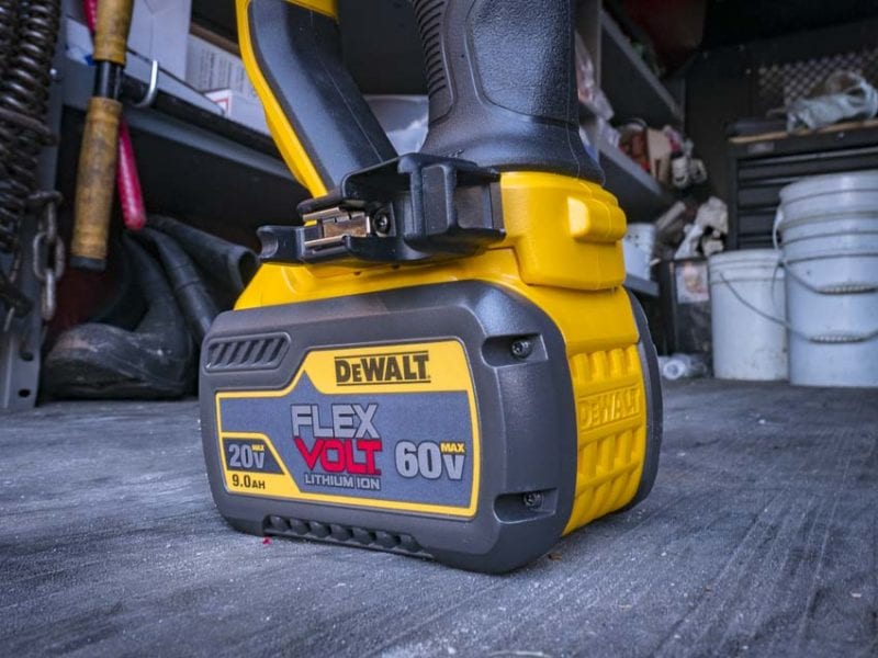 One other thought โ€“ you can slide a relatively small Milwaukee battery into the Super Hawg in a pinch, but the smallest FlexVolt you can use with this DeWalt hole hawg is a fairly large 6Ah. With that handle and battery, the tool weighs in at 18.4 pounds. Thatโ€™s about 4 pounds heavier than the Super Hawg and I really notice it when I have to drill above shoulder height.