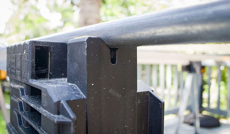 The V-groove has been a well-used feature on the DeWalt Metal Folding Sawhorse.