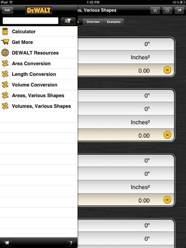Wanting to make sure the DeWALT Mobile Pro was beneficial to all construction professionals, the app was designed with a customization option that includes trade-specific calculations and formulas. Now, these aren’t free, but rather “in-app” purchases that extend the usefulness of the base application.