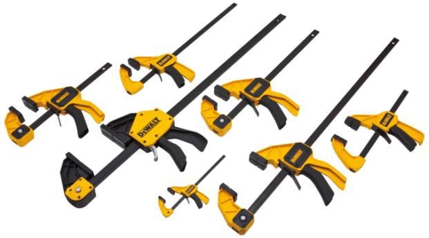 If youโre really not sure what to start with, consider the Dewalt Trigger Clamp 4 pack. It comes with a pair of 6โณ medium clamps and a pair of 12โณ large clamps. This will handle most of your general clamping needsย and currently runs $59.99. User reviews have generally been positive across the entire line.