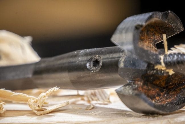 Aside from speeding up the cutting experience, the size of these bits and the way they aggressively cut into wood tends to quickly drain drill batteries. Weโve seen this when doing in-house testing and when using them in the field, especially using a 2 9/16-inch bit.