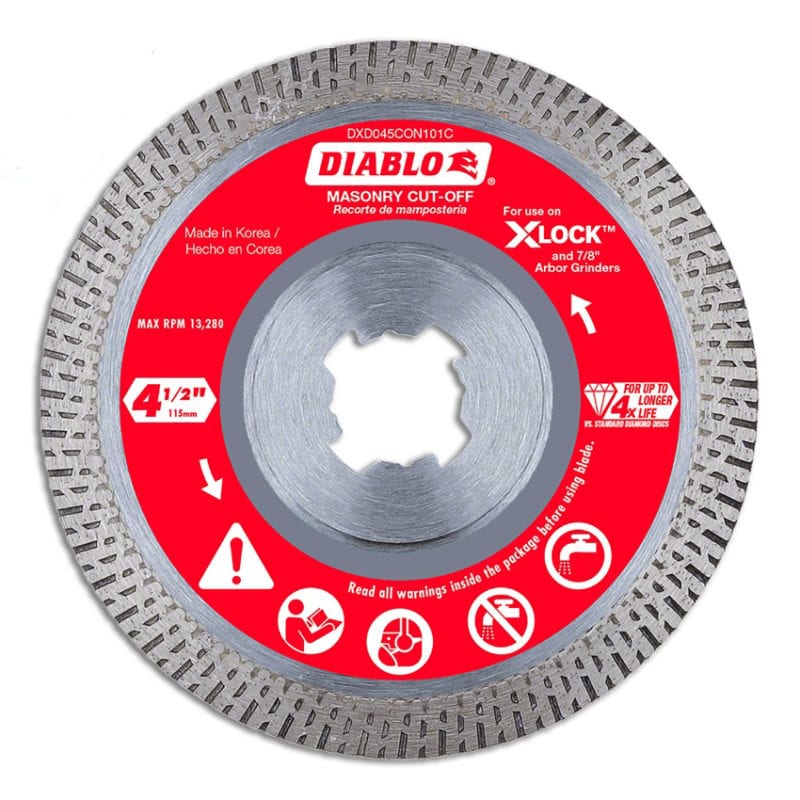 Since these Diablo masonry grinder wheels feature the universal compatibility of X-Lock they remain backward-compatible with standard grinders. If your angle grinder uses a 7/8โ€ณ arbor youโ€™re good. And, if you picked up a model with the newer X-Lock arbor system, these blades work there as well. X-Lock grinders benefit from the tool-free โ€œsnap-fitโ€ system.