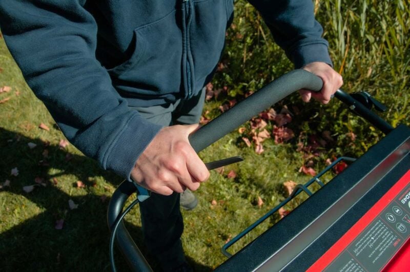 Most of the competition uses a folding lower bag design that is suspended from the handlebar frame by a tabbed system and latches to keep it closed. When you empty it, you have to release the tabs and unroll the bottom of the bag while dealing with the weight of the leaves you collected. While it does empty quickly once you have it open, it can be a pain to dump the debris where you want it. Of course, when youโre done, you have to roll the bag back up securely, and if you donโt get it latched correctly, youโll be spreading mulched leaves all over the property as soon as you start the machine back up.