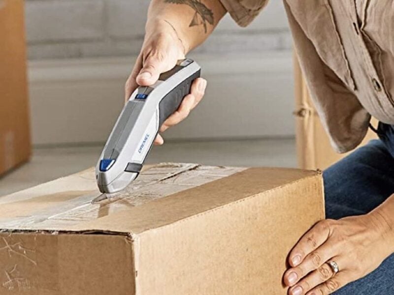 Dremelโs 4V cordless electric scissors feature durable, sharp blades. Designed to cut through materials like hard plastic and cardboard without breaking a sweat, these electric scissors are great for DIY projects and so many things around the house. Just donโt use them to replace your poultry shears. Everything else is fair game.