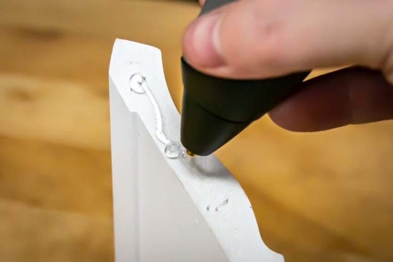We also really appreciate the precision tip that Dremel includes on the pen. Not only does it let us do detail work without smearing hot glue everywhere, but it doesnโt really drip when we put the pen down. The pen is comfortable to use and it has a wide base that you can set it down on without having to worry about the hot tip dropping onto your work surface. We used it for small project work and even to repair a small piece of trim.