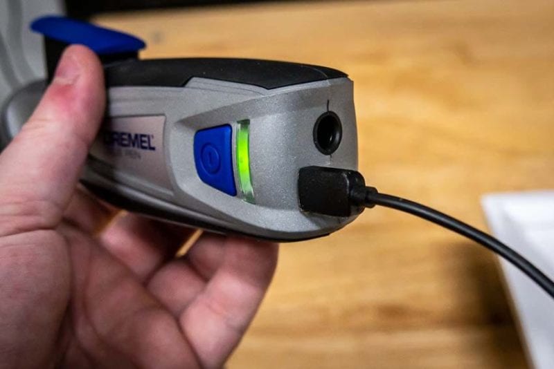 The Dremel Cordless Glue Pen runs on an internal 4V lithium-ion battery that gives you up to 30 minutes of continuous use before you need to recharge it via a mini USB cable. It also features an auto safety shut-off that engages after 10 minutes of inactivity to save the battery.