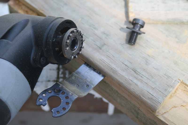 In practical use, we discovered something very important to note: oscillating tools… well, oscillate. This means that if you aren’t careful to securely tighten the clamping screw all the way down, you’ll quickly find it backing itself out and the tool will let go of the blade. Trust us, we speak from experience and even managed to capture it in a series of pictures we took just before we realized what had happened: