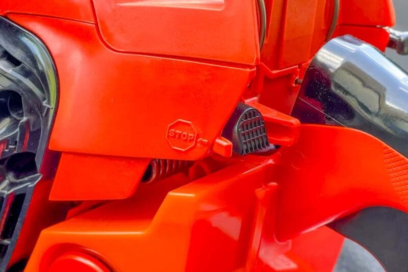 The big change between the CS-4910 and the CS-4920 is that the saw now has a momentary stop switch. Instead of having to remember to pull the switch back to the on position, it automatically returns to it, so itโs ready to go as soon as you pull the cord.
