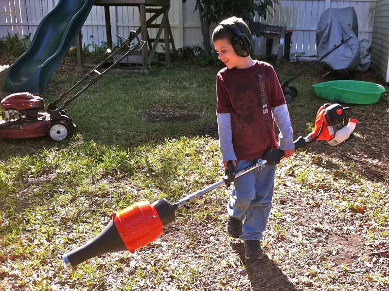 We also had to admit that the blower attachment looked very cool in its linear form. Most blowers take a curved shaft approach, with an almost hairdryer-like attachment at the base. The linear model of ECHOโ€™s PAS-225 lent itself to a much more direct feel โ€“ like pointing a rocket launcher or jet engineโ€ฆ a fact that my 8 year-old admired and then finally insisted on taking advantage of. With careful supervision, I watched as he was able to lift and use the blower on his own and โ€œattackโ€ the leaves with gusto. While this isnโ€™t a light blower by any means (around 13 pounds), it certainly is a valid and worthy trade-off to simplify your tool arsenal. And if your 8-year-old can carry it aroundโ€ฆ well, itโ€™s going to be hard to wimp out on the added weight and still be manly. If youโ€™re looking for more power, ECHO can support that with its dedicated products (including backpack models) that deliver additional horsepower and output air speed.