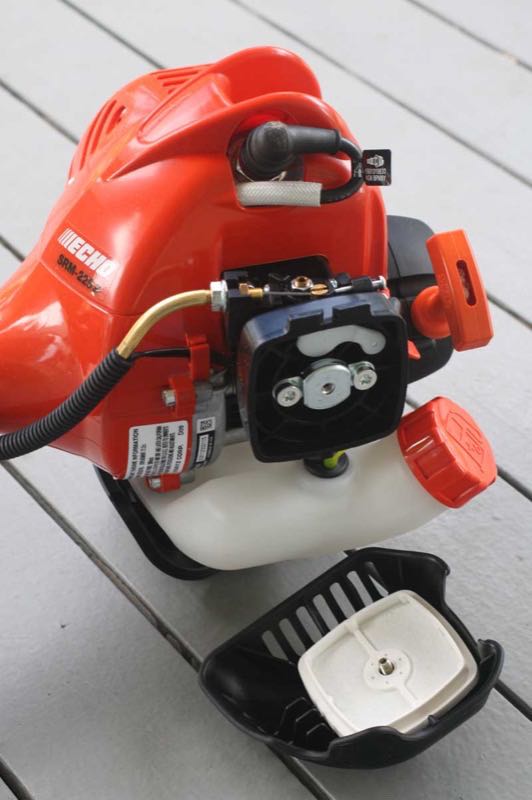 ECHOโ€™s SRM-225i comes standard with a 21.2cc 2-cycle engine that seems to put out a lot more power than the displacement indicates at first glance. Checking over the entire tool itโ€™s easy to see that the 225 series is built for long-term use, making it more of a professional crossover tool than just a tool made for occasional use. We found the rubber overmolded grips on the handle to be extremely comfortable. We also liked how the fuel tank was oriented in such a way that the trimmer could be refueled (with a 50:1 gas/oil mix) simply by placing it on the ground and removing the cap โ€“ you didnโ€™t have to turn it on its side to add the fuel.