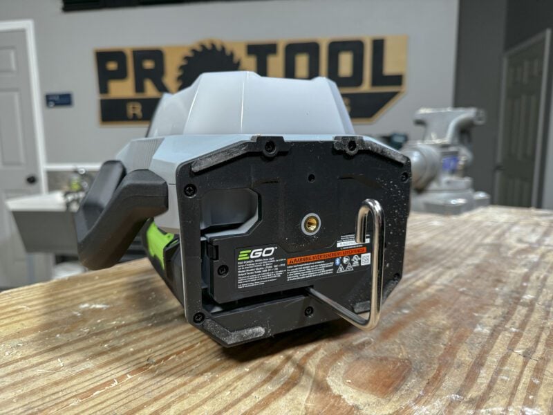 This light is compact, weighing just 4.2 pounds bare and around 9 pounds with a 5.0Ah battery. While this isn’t the most lightweight area light (since EGO batteries are on the beefier side), I certainly had no issues carrying it around the shop during testing.