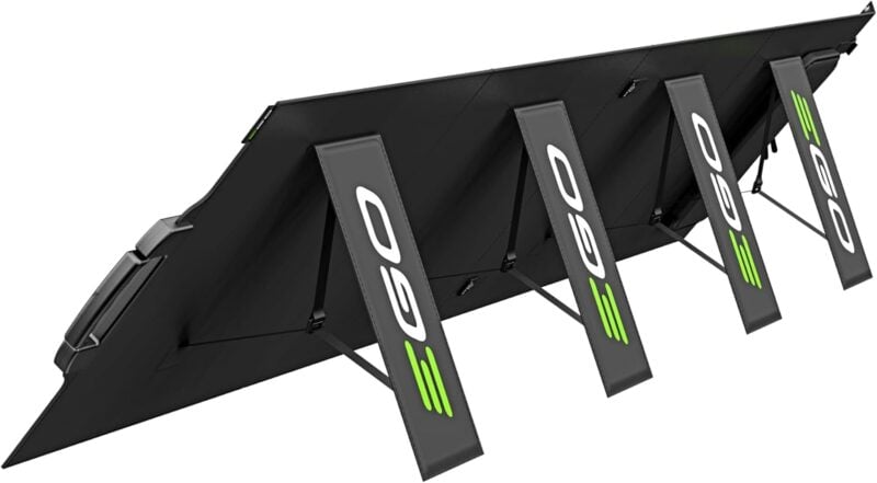 EGO included kickstands to deploy when the solar panels are in use. The smaller model has two kickstands and the larger one features four for optimal balance. When youโre done using them, the kickstands fold flush against the back of the panels for a smaller storage footprint.