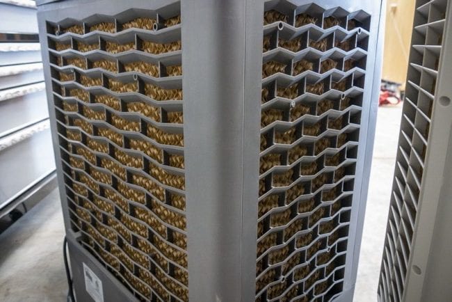 This Luma evaporative cooler has 688 square inches of filter space. Itโs an effective filter area to airflow ratio thatโs closer to what Hessaireโs larger unit uses.