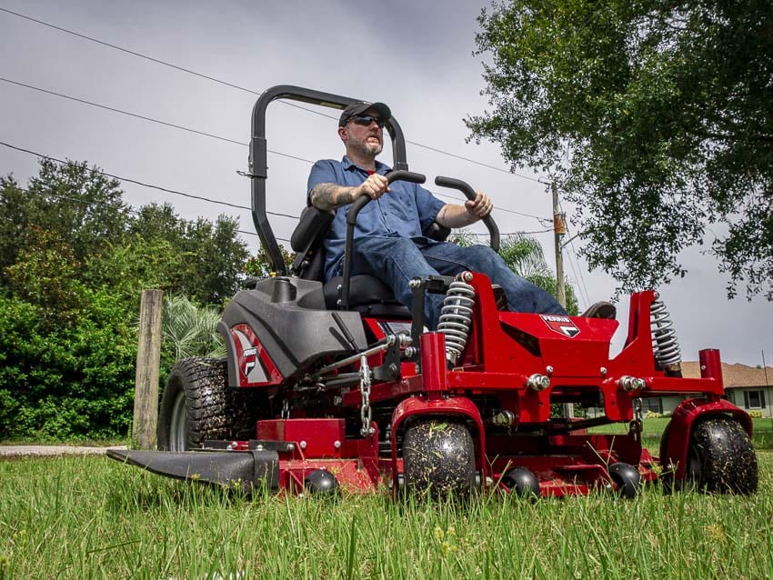 Secondly, the floating suspension seat provides a really comfortable ride. Usually, when hitting uneven terrain at a brisk 7-10 mph, you feel it immediatelyโฆ so you slow down a bit to compensate. The Ferris IS 2100Z smoothes out those bumpsโdramatically. It lets you hold the speed while also maintaining cut quality. More on that later.
