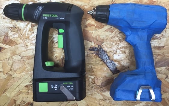 Overall Styling: The Festool C18 does not look like other drills, and its non-standard appearance can make it difficult to tell how big this tool is compared to a more conventionally-shaped drill. Comparing the C18 to another 18V drill, their overall sizes are very similar. The major difference is that the handle of the Festool is shifted rearward to make room for the addition of the front vertical member.