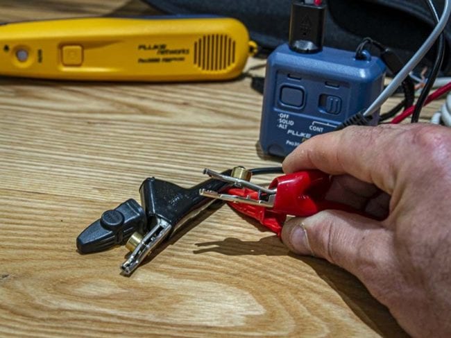 The toner includes a pair of alligator clamps and an RJ-11 connector for terminated phone jacks. I mainly work with Cat 5, so the alligator clamps are what I turn to most frequently.