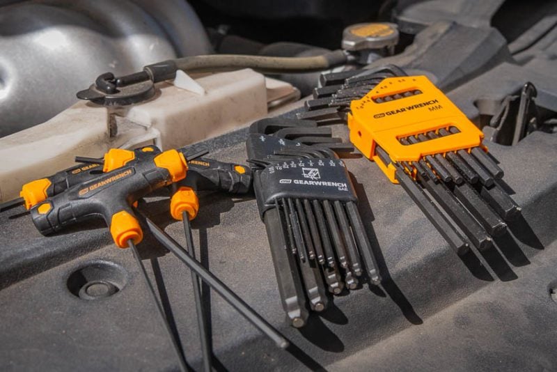 My personal favorite way to go is with T-handle hex keys, and Gearwrench offers them with a ball end or standard chamfered end. While they serve a similar purpose, theyโ€™re far more comfortable to use and offer a longer reach.